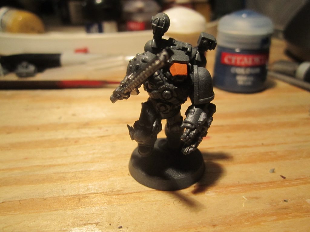 I’m still not sure what I want to name the army, or fluff behind it. I thought I’d do something along the lines of what Reece did with his Space Marines and his Native American build. I think that is pretty sick. But as of now I’m going after a futuristic German WWII paint scheme. Just the colors of course, not any of the Nazi ideals. I’m using pig iron helmets on all my infantry. My characters are mixed matched bitz from varies amounts of different units and specialty bitz such as the Chapterhouse studio eagle wing shields. I’ve also shaved off all the icons on everything to help keep the generic theme going.