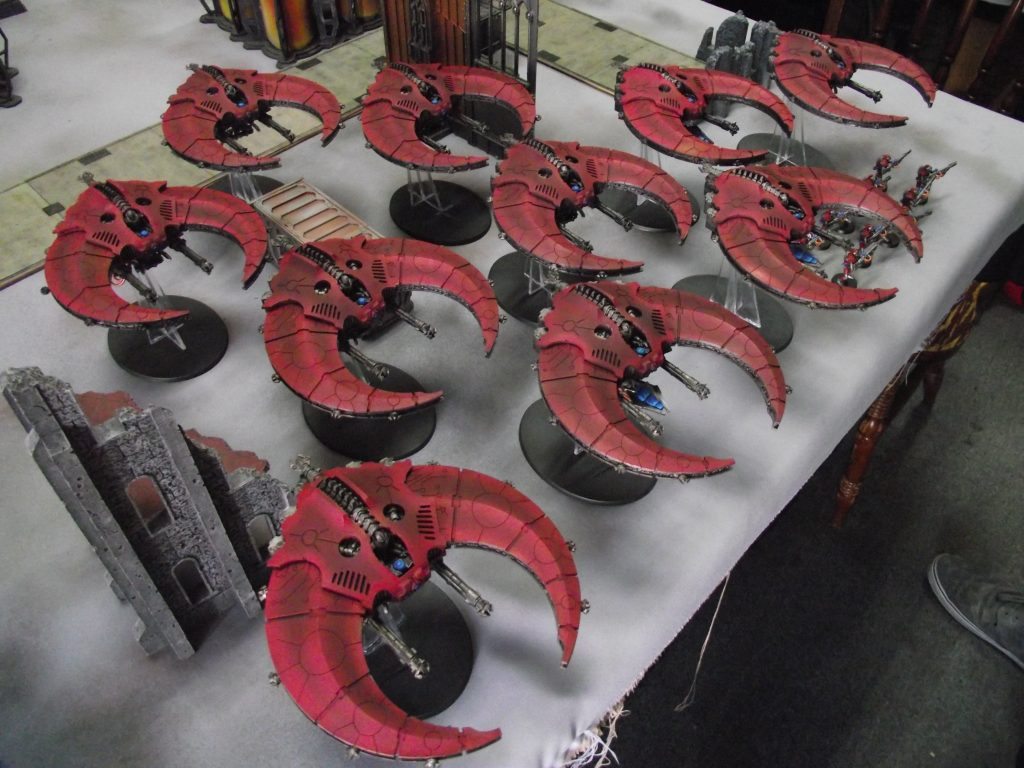 4. I’ve played against a 7 flyer Cron force coupled with a deathstar ground component as well – and beat it with a balanced Necron force (I had 2 Flyers – one Nightscythe and one Doom Scythe and moved 2nd) BUT … it wasn’t a fun game.