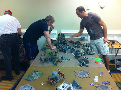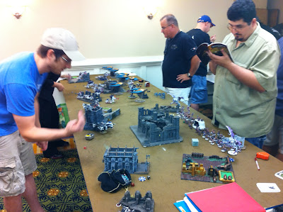 The Grand Tournament was held again at the Marriott in the Tampa international airport here in sunny Florida. Some flew into the airport and never had to step outside which I think is pretty cool. We had 64 players originally signed up with six rounds over the course of two days (three rounds per day) but had a couple drop right before the weekend. As fate would have it there was one undefeated player going into the final round but he lost his last game so we ended up with six players accumulating 5W-1L records. Bonus points were used to determine the final ranking (total aggregate of kill points, objectives held, First Blood, Slay the Warlord and Line Breaker summed from all six rounds).