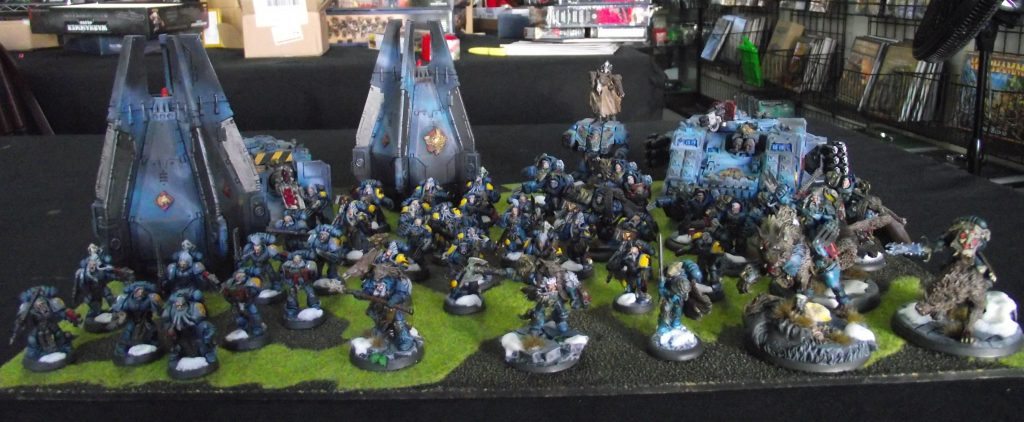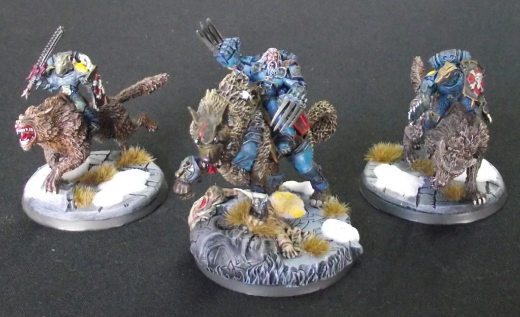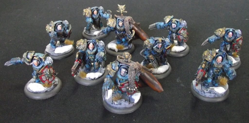 This army is painted to a good table top level of quality. It features a large amount of customization, with custom bases, shoulder pads, Mr. Dandy Thunder Wolves, and similar extras.