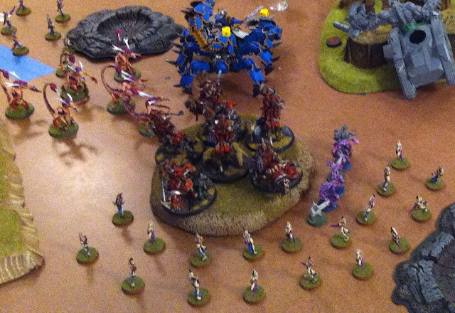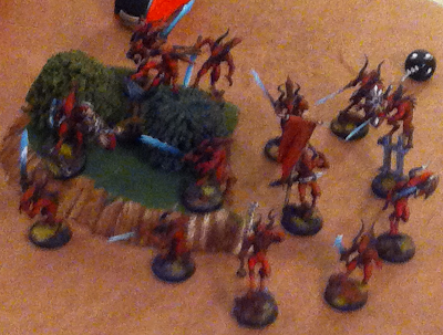Flamers and Fiends encircle my CrusherStar while the Seekers go after my Bloodletters.