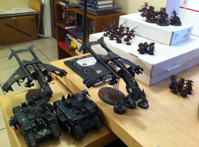 Cool report with some not so cool proxies. The thing I hate about allowing special rules in missions is that they affect the games a lot more than people realize. Having the demons start on the board with what he wanted to use gave him a huge advantage i.e. immediate board control on a large area of the board. Other than that cool stuff, nerds.