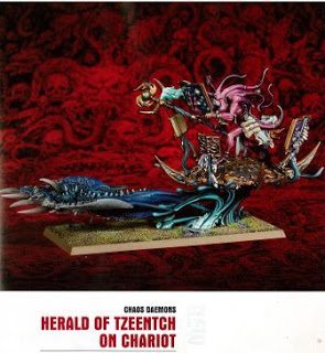 These pics are floating around the net and they are pretty cool. Not nearly as cool as I was hoping and the heralds don’t look like anything you couldn’t convert up, but that’s just me. I like the Tzeentch Chariots, though. Dying to see the Greater Daemons! What do you guys think about them?