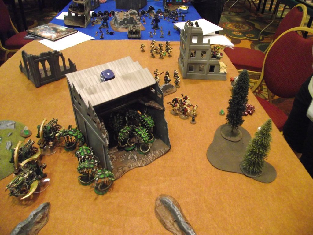 1. We like it a lot but decided that we were going to learn games one at a time as it is too complex to do more than that. Right now it’s Fantasy, then we’ll do Warmahordes, probably Infinity after that. Those tables were gorgeous!