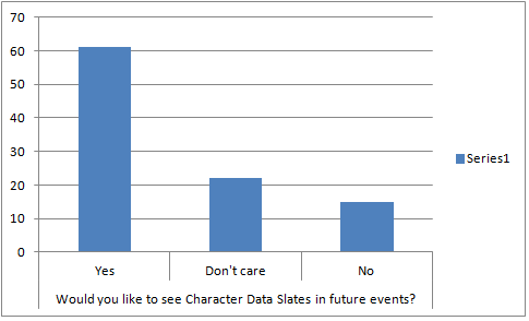 Almost a 100% flip flop on the result. We have a huge change here, and folks are totally open to allowing Character Data Slates going forward. This honestly doesn’t surprise me, and I personally am fine with this. We will be allowing these at the BAO.
