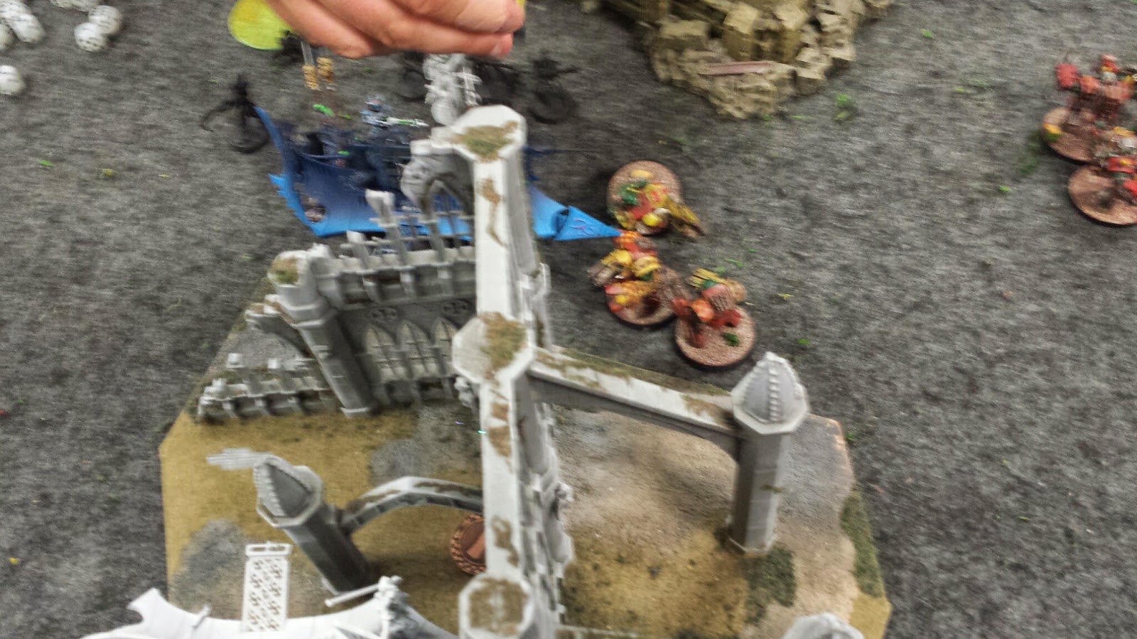 Note, for the batrep below, that the store uses a houserule that the bases of the ruins do not count as part of the ruin and are treated as clear terrain. This kind of sucks balls for Orks, but we make do.