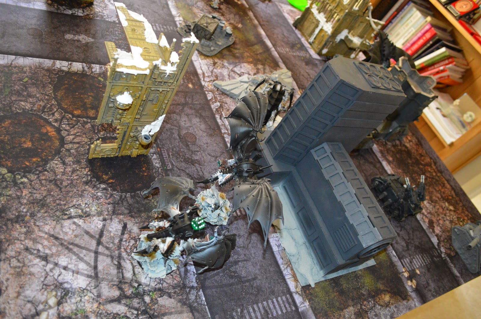 The Dimachaeron then scuffles back into the ruin to claim a cover save and the Hive Crone runs off the board into reserves.