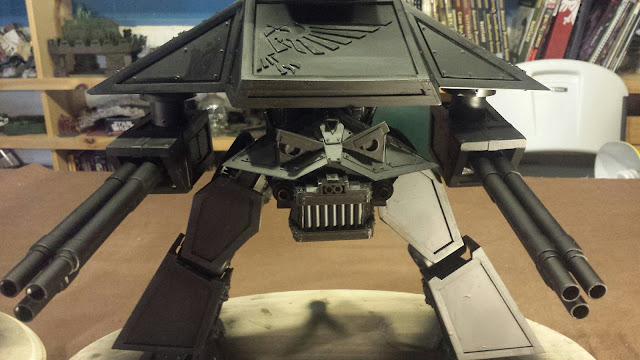 | At first, this guy was going to be Legio Metallica, but the customer changed his mind to the Aquilla. The Aquilla is too small, so I did the Mechanicum half and I think that works out great. |