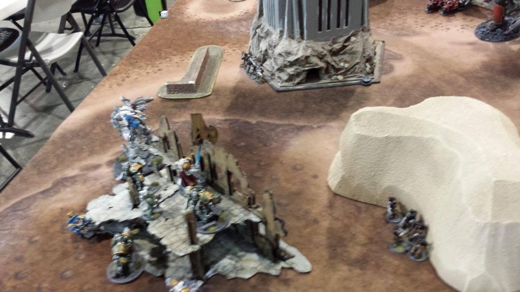 He had his bikes central and his knights on either side with the Crusader on my right and Acheron on my left. I pushed hard right and went after the Crusader first doing 4 hull points round one with my drop podding cents. Turn two had his Crusader dead and my DP Cents dead from his grav bikes. Turn three I went after the Acheron and got him down to one hull point and my Dreadknight could not finish him off in assault, allowing him to assault my star with the Bikestar and the Acheron. I actually weathered things very well and took out the Acheron with my Libby’s hammer. Things were looking good. I planned on gating out and finishing off his other bikes so I could get in a position to win. Then I misshaped and rolled a 1, killing my Centstar. Ruh oh! I still had a chance to win on maelstrom, but couldn’t get the rolls to seal it. 1-10 loss for me! Great game and still a lot of fun.