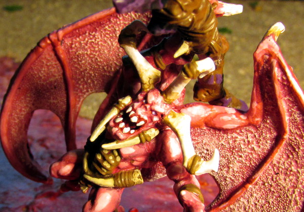 The work on WAAGH! Tuska, my counts-as Khorne Daemonkin army, continues. I’m trying to create at least one version of my list which is reasonably competitive, which means the addition of Belakor. This model is my attempt at making that fit into my army thematically. For this model, I took a pair of wings from an old Reaper dragon and attached a body and legs from the Savage Orc Boar Riders. Then I used one of the arms and the big weapon from the Savage Orc infantry pack for his shadowy blade weapon.
