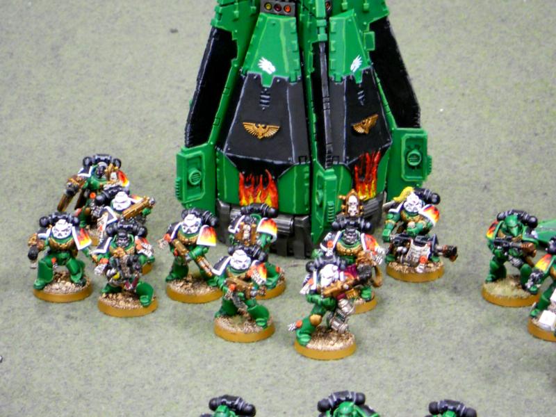 - Terrifying Proficiency- Enemy units subtract 2 from their Leadership whilst they are within 12in of at least three units from this formation. (That includes the Drop Pod dedicated transports…)