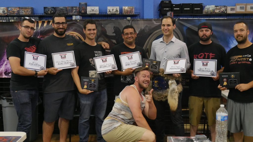 Brandon Grant beats Matthew Schuchman and his Eldar Seer council to become the only player in the tournament to finish 6-0. Brandon’s Dark Angels (below) took care of business against 4 opponents with 5 wins, and 3 players who won their respective “best of faction” rewards. Brandon was matched against an insanely diverse and talented group of players (Daemons, Eldar, Orks, Ad Mech, GuardDar, and Imperial Knights). Not only that, but he did it with a list that is widely regarded as inferior to it’s big brother the White Scars battle company. Good Job Brandon, way to take the sacred belt of Russ away from those pesky space puppies. Azrael would be proud.