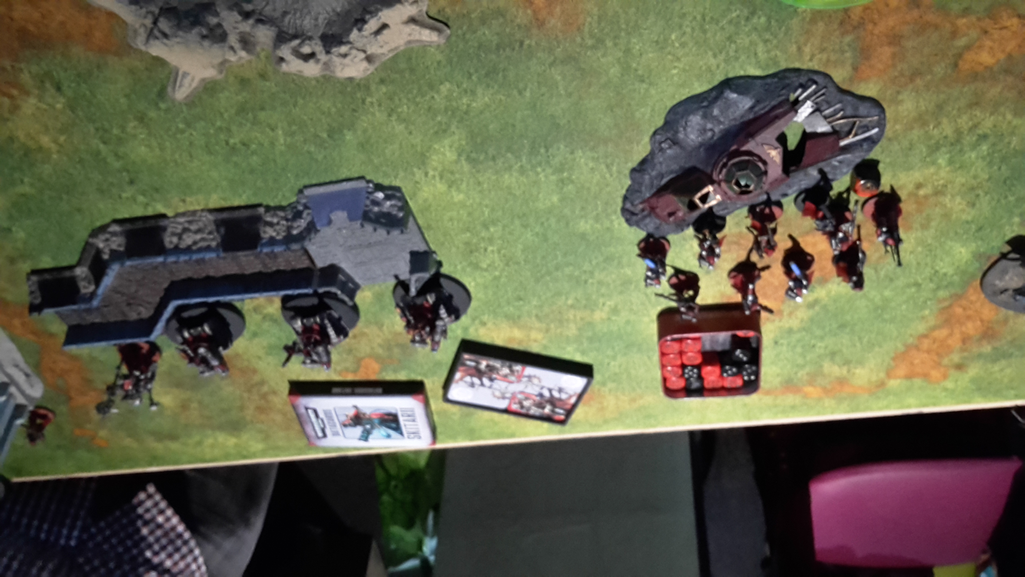 On the left flank, the Veterans and Platoon Command advanced on the Ruststalkers. In the centre, the Priest led his combined squad onwards to the communications array in the centre of the battlefield.