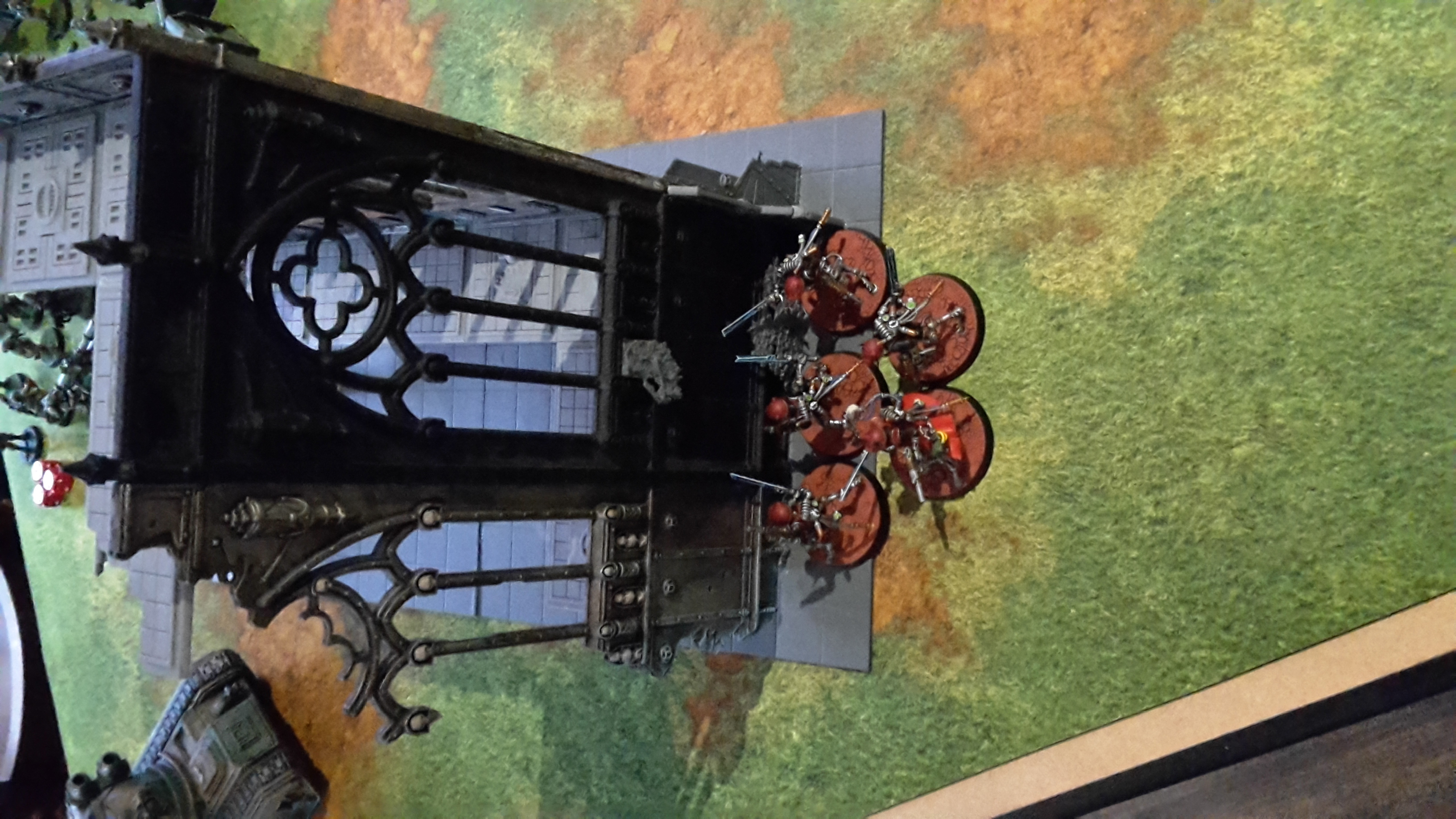 The Cerastus fired at the central squad. His blast weapon finally rolled a 6 to go Vortex, but in a cruel twist of fate, it scattered off of the squad and caused no damage.