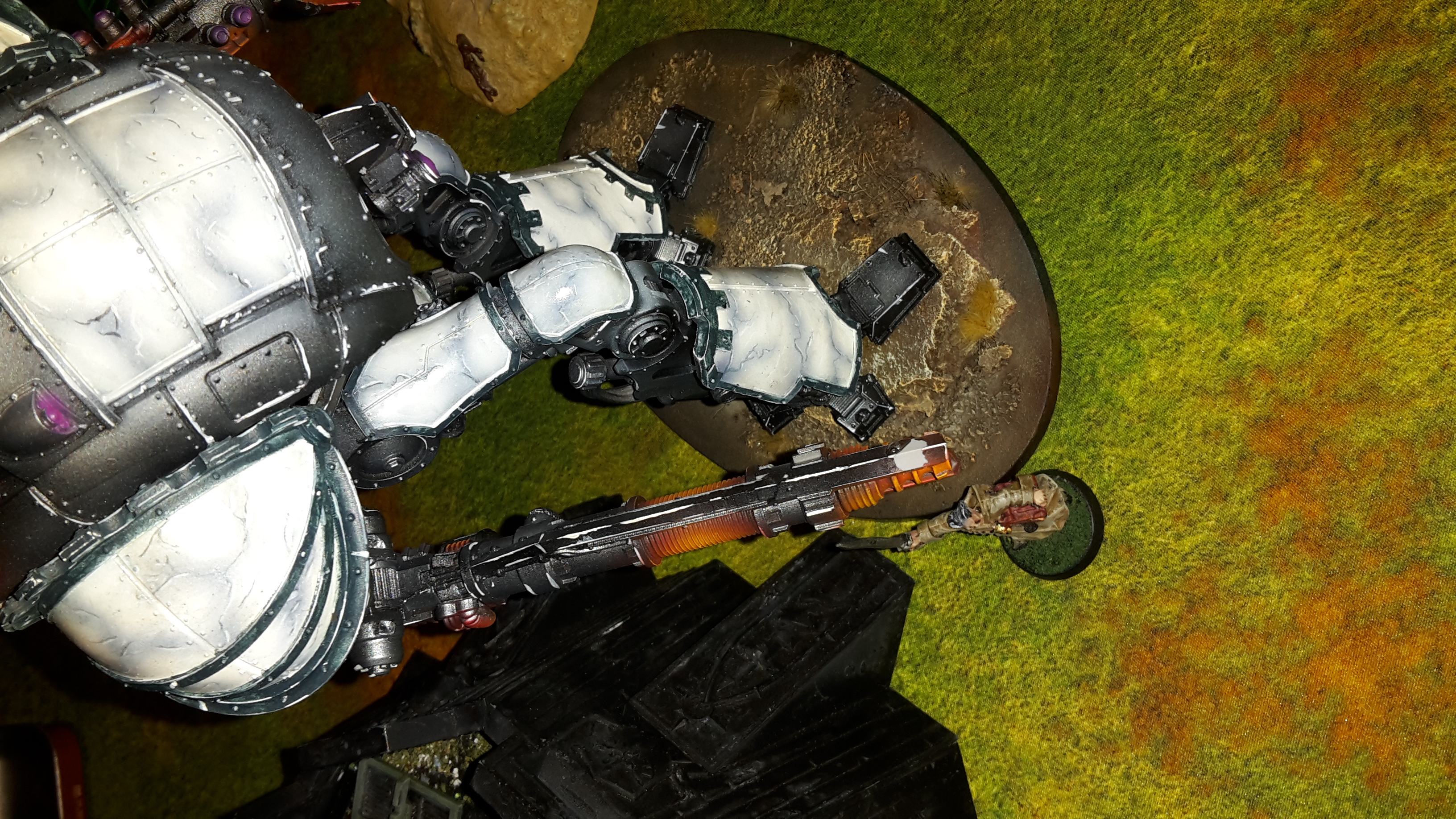 Pask fired his Punisher Cannon at the Imperial Knight, but was unable to harm it (I didn’t roll a single 6 to wound out of 18 hits of the Punisher cannon).