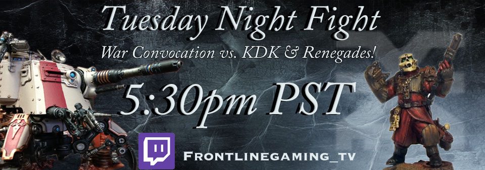 We’ve got a good fight lined up this evening! Reecius’ KDK+Renegades vs. guest John’s War Convocation! Tune in at 5:30pm PST to our Twitch Channel to join in for the fun.
