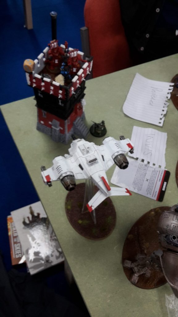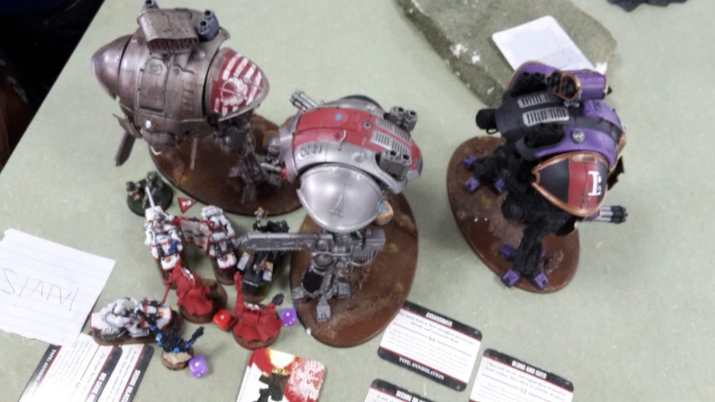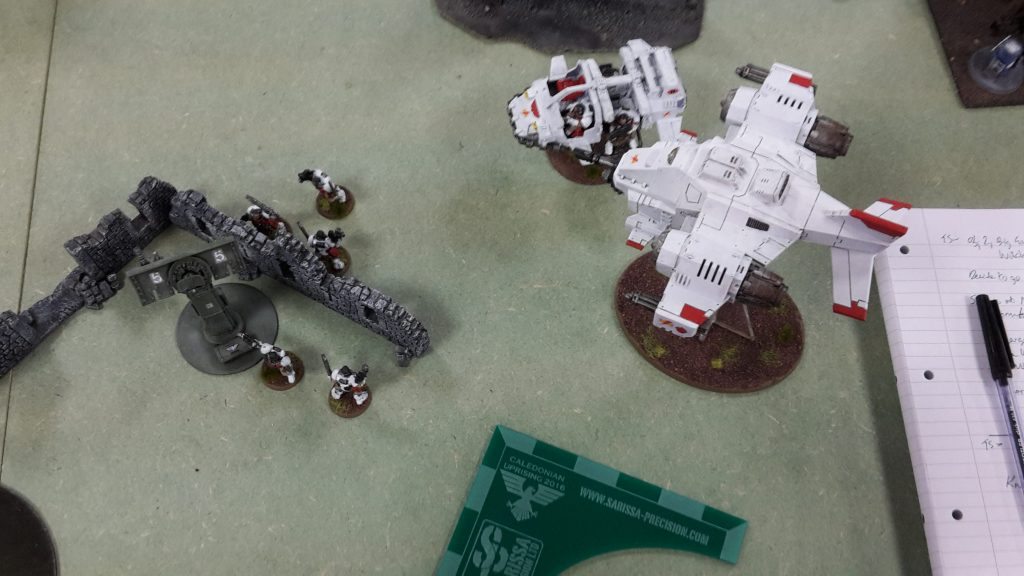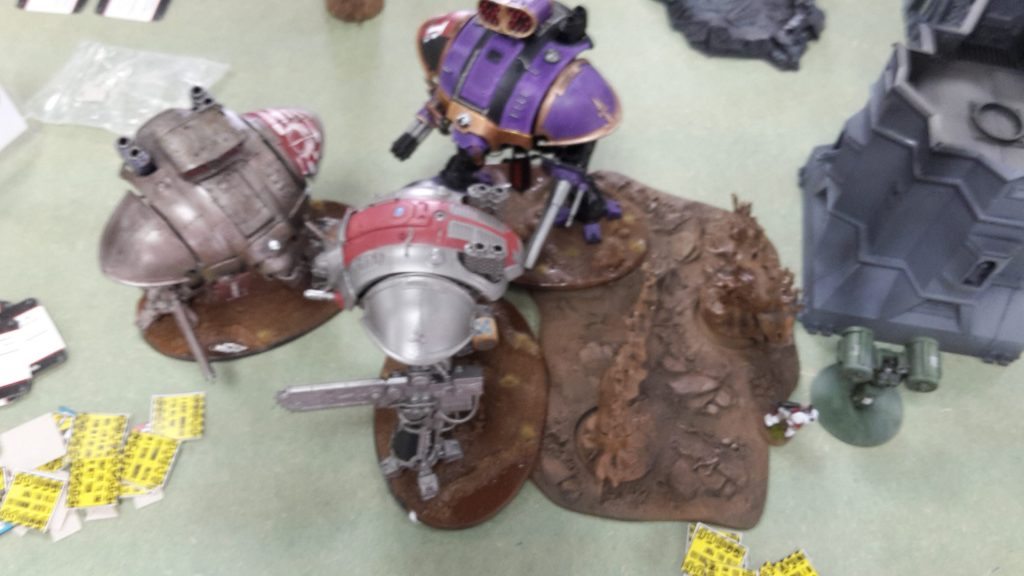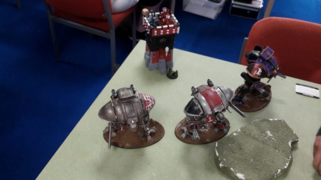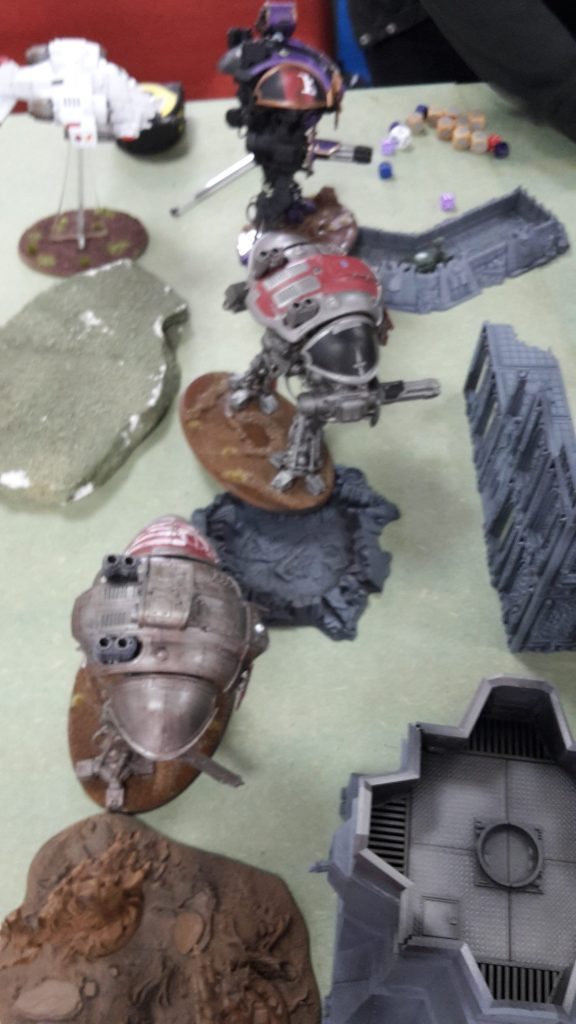 One of the Centurions fired on the Knight, but failed to cause any damage with its grav cannon. The Flyer fired at the Knight, its las-talon hitting, but failing to get past the Knight’s armour. The assault cannon penetrated, but was saved by the Ion Shield of the superheavy walker.