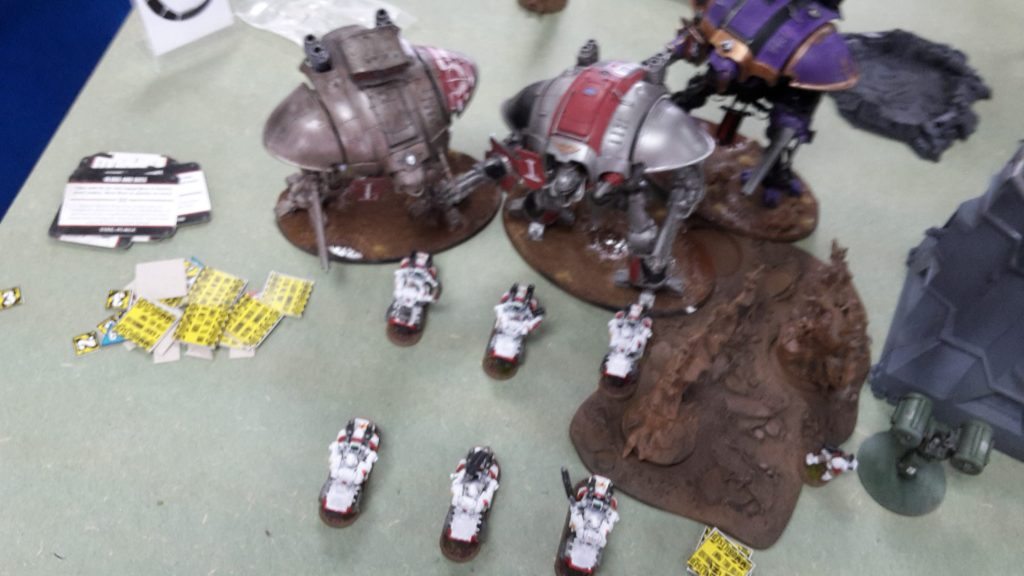 The Imperial Knights turned and advanced on the White Scars’ Command Squad, as the Librarius Conclave moved away from the approaching enemy bikers.