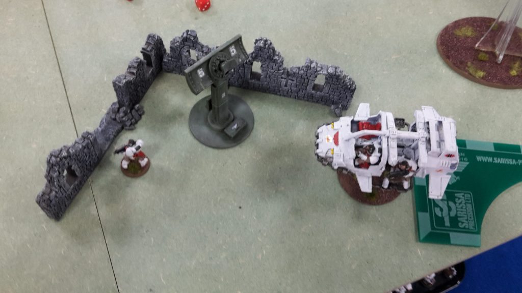 At the end of his turn, Mark scored no points. I got off lucky that round. By all accounts, the Gatling Cannon should have shredded the Landspeeder, but some poor rolls from Mark saw it survive.