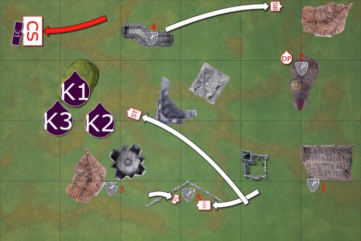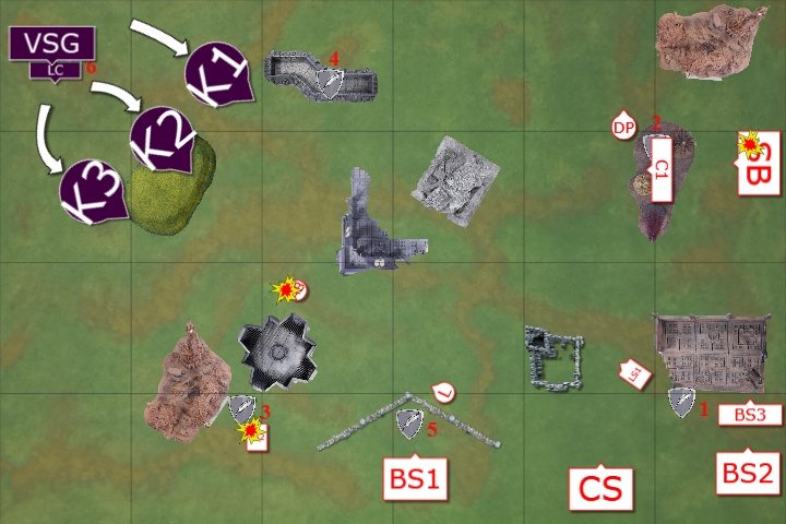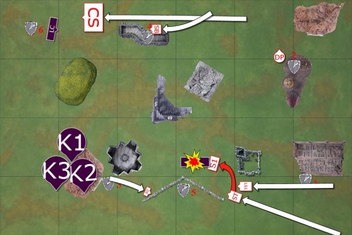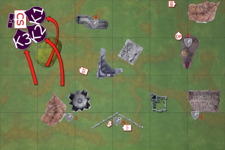 The Knights advanced on the Command Squad in combat with the Conclave. The Conclave were able to cast Invisibility on themselves once more.