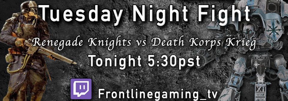 Tonight we have Jason from the Iron Halo GT vs PeteyPab and the studio’s Renegade Knights with Reece’s Nightlords as allies. Tune in on Twitch tonight at 5:30 PST.