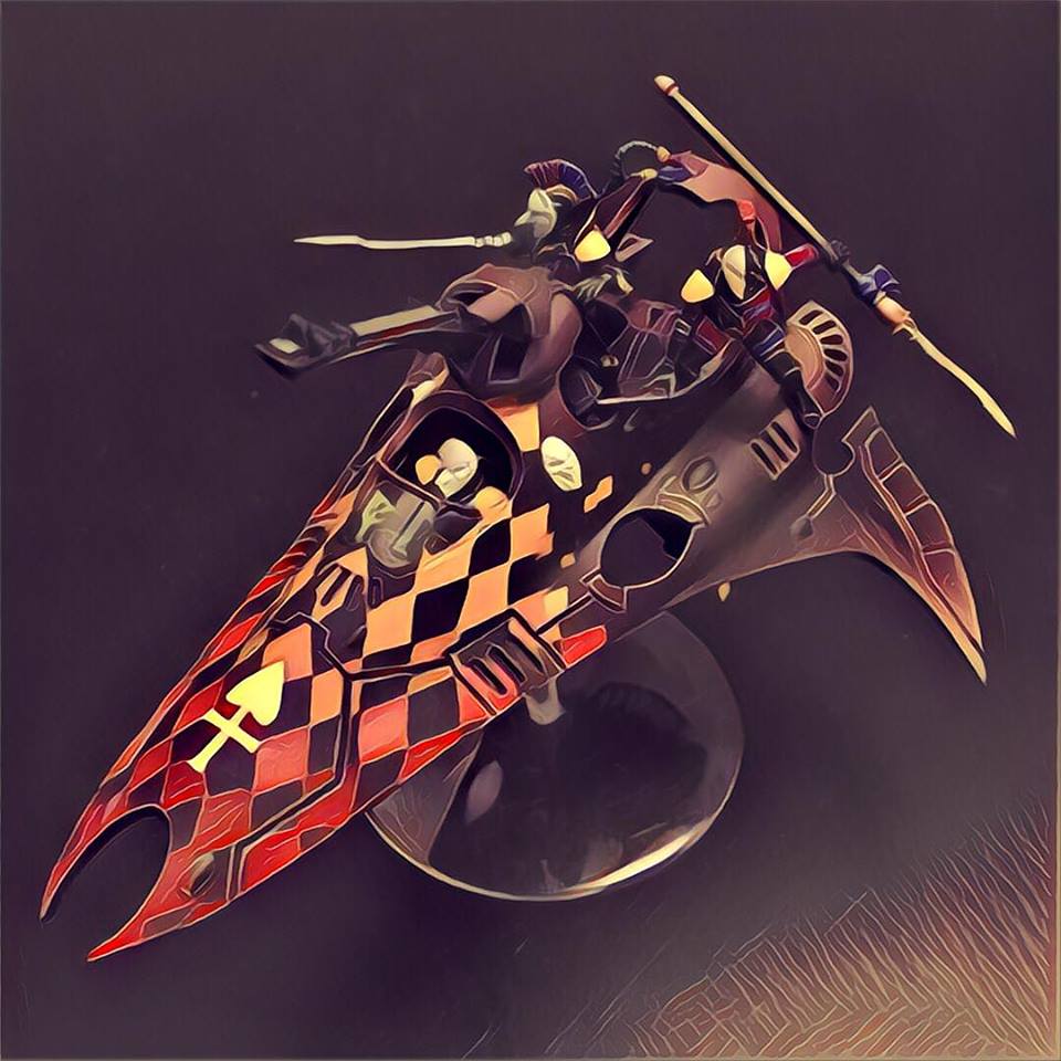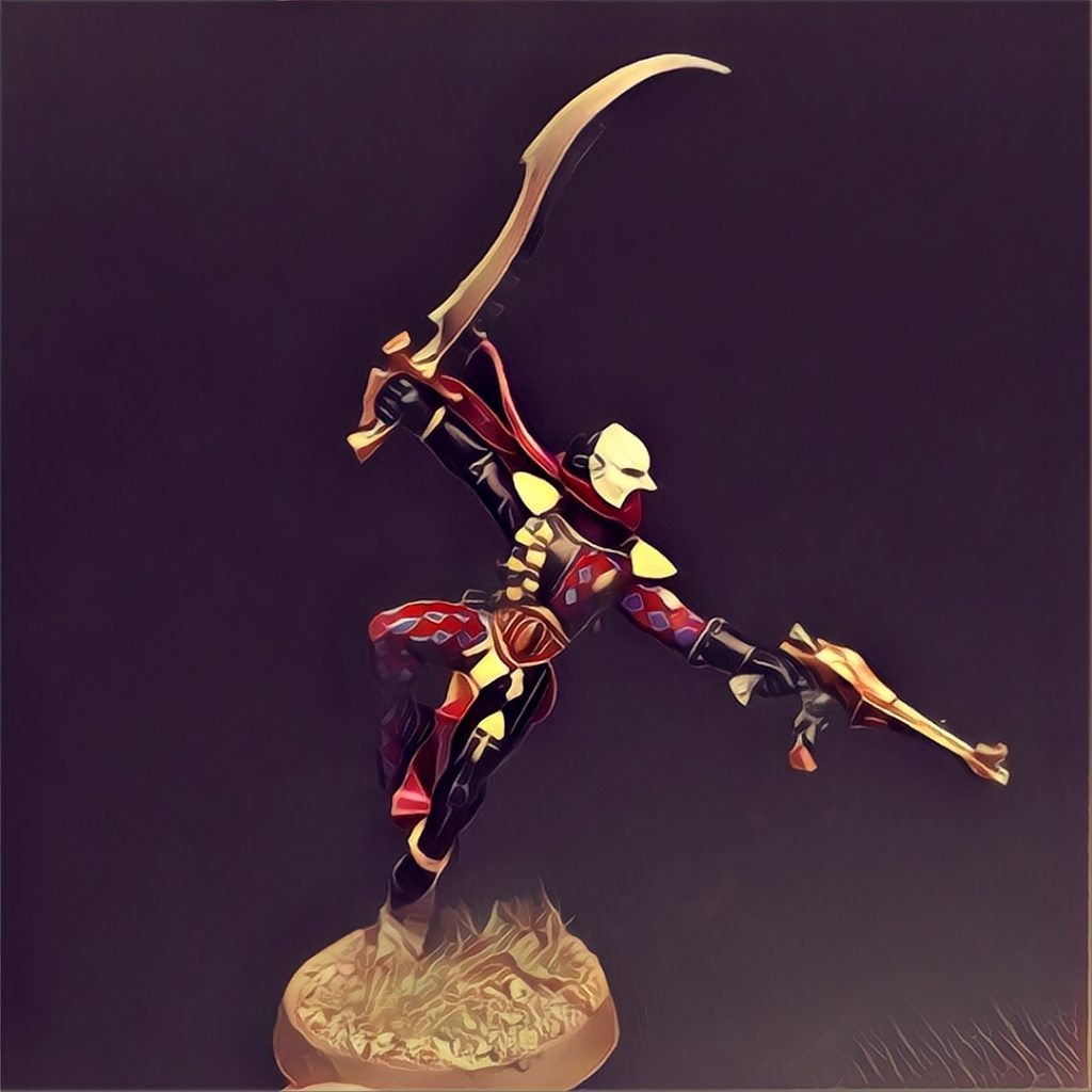 The second drawback here is this clown named Dusk. He’s a stand-in for the otherwise excellent Troupe Master but is actually nothing more than a stock player with two wounds. This means no haywire grenades and lesser prowess in challenges. Ouch. The rest of the Companions are pretty geared up though, so perhaps they can compensate. Note also that this unit doesn’t come with an option to purchase a Starweaver transport so you’ll have to spend a slot to get one. And you’ll want to get one since running this unit on foot not only makes it incredibly vulnerable to shooting, it severly hinders the possibility of a turn one charge (which is the whole point). This generally isn’t a problem but restricts slots in an already tight codex even more.