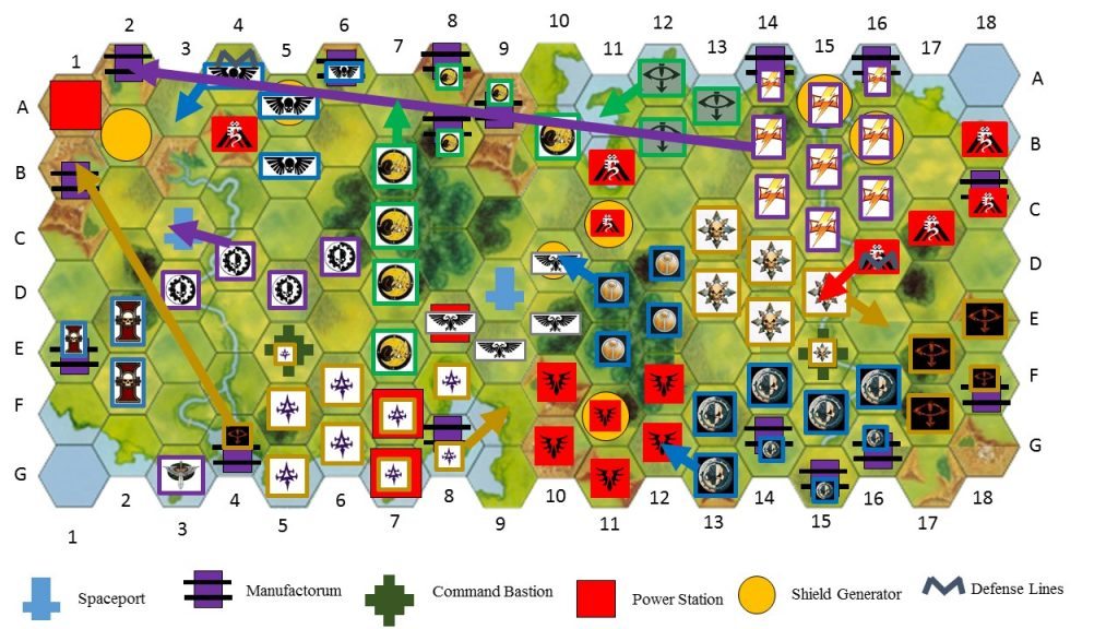 I was blown away by the number of players that signed up to fight in my last campaign. Fifteen players was about three times the number of players that I had previously had for any other campaign. I decided to organise different campaign alliances made up of 2-4 players with the same army or forces likely to fight together.