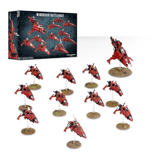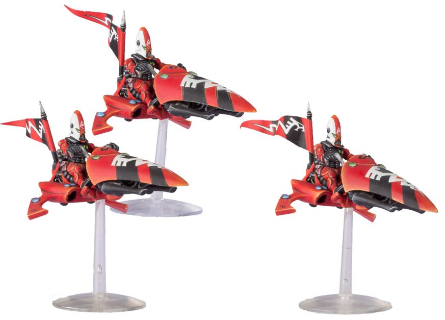The choices in Codex: Scatbike are somewhat limited. The only Troops choice is units comprised of 3 Windriders with scatter lasers or 10 Windriders with scatter lasers, nothing inbetween. The unit has the option to include a Warlock and must be led by a Farseer on a Jetbike.