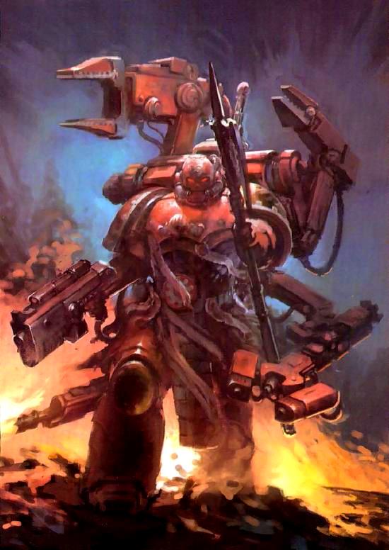 - May replace Servo-arm with a Servo-Harness- a harness fitted with two Servo-arms, a plasma cutter (a twin-linked plasma pistol) and flamer. May fire two of the Servo-harness weapons in the shooting phase or one servo-harness weapon and one other weapon.