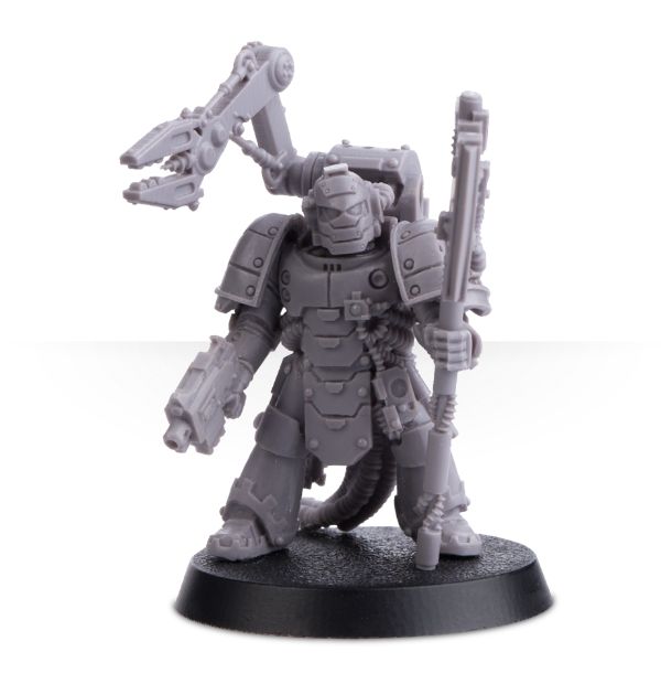 The Techmarine is part of the Armoured Task Force. The Techmarine boosts this task force, allowing vehicles in the formation to ignore Crew Shaken and Crew Stunned results when within 6″ of the Techmarine. In addition, he also gains +1 to his Omnissiah rolls, allowing him to repair on a base 4+ (or 3+ for Iron Hands Techmarines). This is great for allowing the Techmarine to keep the vehicles in the formation going, so you will probably want to upgrade him with a Servo-harness and/or Servitors for maximum effect. For more info on the Armoured Task Force, check out the review in the Tactics Corner.