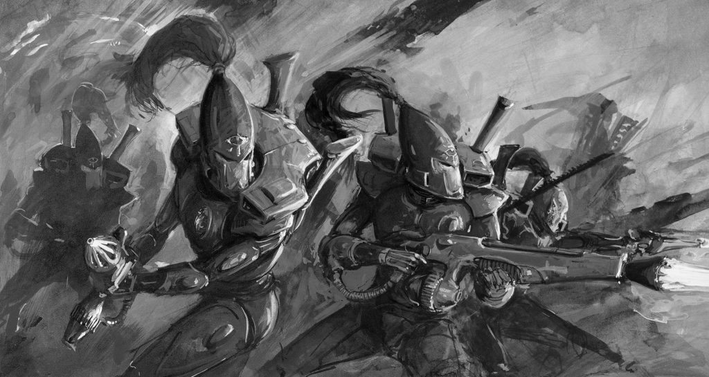 The Guardian Stormhost is also a nice choice here. Getting free flamers and fusion guns combined with their speed in the Warhost makes them a force to be reckoned with. Unfortunately, while they can gain a lot of Initiative 5 close combat attacks, their Strength 3 attacks make them less than optimal. If you’re fortunate enough to have a Warlock with each unit, they can buff the strength up with the Empower Psychic Power, but it’s a random roll with 1 dice so the odds are slim of getting it most of the time.