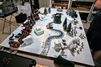 A few weeks back I hosted my first ever tournament for 40k. I’ve moved out to the mid coast of Maine and as such I’m hours from game stores that host events, and a good two hours from the best store in the region that I’ve been going to for some time. We have an upcoming annual event coming up, The Standish Standoff, and my playgroup in the area wanted to get some practice in. I happen to have a pretty large basement, a number of catering banquet tables for work and had purchased a number of sheets of sanded plywood as table tops. We figured on rounding up 6 players, and maybe we would get 8 if we got lucky.
