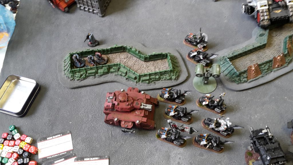 The Meltagun Bikers assaulted the other Baal Predator, stunning it with their krak grenades.