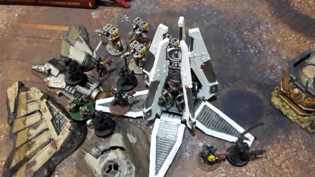 The Deathwatch and Vanguard Veterans advanced on the Command Squad, while the Corvus Blackstar screamed across the battlefield.