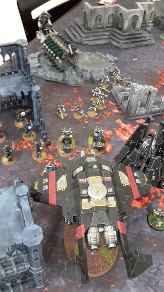 The Corvus Blackstar turned in its arc to take another pass at the Doom Scythe, whilst the Vanguard Veterans moved to help out their Captain.