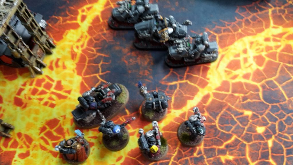 The final Whirlwind fired at the second unit of Deathwatch Bikers, killing two of the squad.