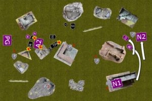 In his first turn, Yaro drew Area Denial (have no enemy units in the centre of the battlefield), Secure Objective 1 and Hold the Line (have three of your units and no enemy units within 12″ of your deployment edge).