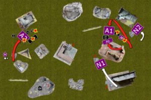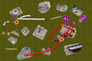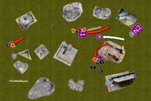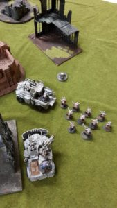 On my right flank, the two vehicles moved around the cover, as the Neophyte unit moved up on the objective. I then decided to launch my ambushes.