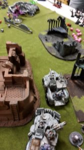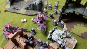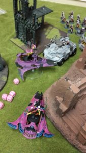 The Death Jester moved up into the ruins to gain a better line of sight, while the two Starweavers moved up to target the enemy vehicles.