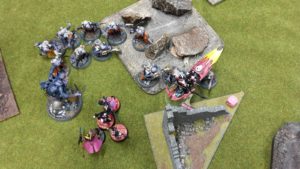 I think perhaps seizing the initiative was the wrong move. Had I let Yaro take the first turn, he may have spread his units out a bit more, allowing me to gang up on a unit at a time and hopefully cause a bit more damage to the army.