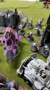 On the other flank, the Rockgrinder attacked a Starweaver, causing four wounds. Yaro passed all his invulnerable saves and the transport was unharmed. This was starting to get infuriating!