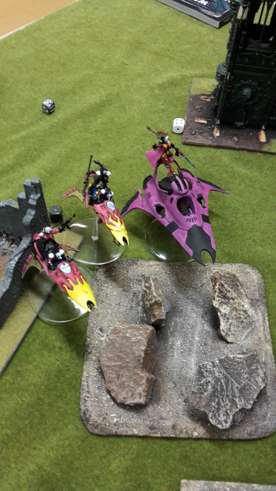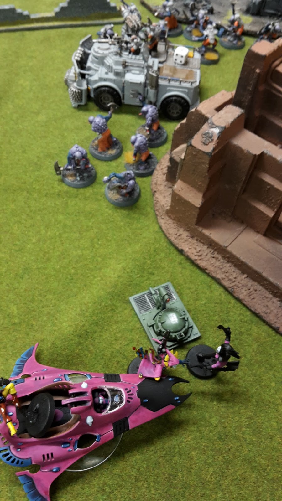 The Death Jester moved up into the ruins to gain a better line of sight, while the two Starweavers moved up to target the enemy vehicles.