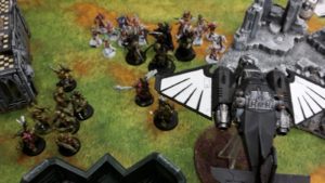 In the shooting phase, the Rhino opened fire on the Darkshroud, but failed to hit with any of its shots. With the rest of the forces engaged in combat, or too far away, there was little shooting to be done.