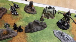 I deployed my Ravenwing on the left flank, away from Connor’s units on his left flank. I figured that my faster units could get to the objectives fairly easily, whereas the Death Guard would have a long walk.