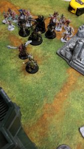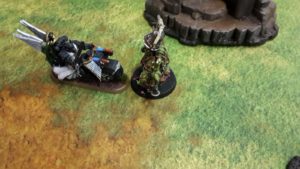 In the charge phase, the Bikers and Black Knights attempted to assault the survivors of the Plague Marines, but both squads failed their long charges. Connor passed his morale test for the squad and they fought one.