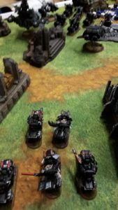 The Crawler moved towards the Ravenwing Bikers, while the rest of the Death Guard on the left flank moved up on the Bikers.