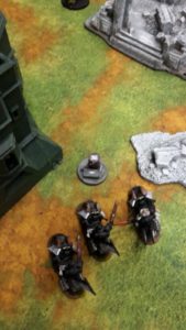On the left flank, the Black Knights fell back from combat. I wanted them to survive the turn and score me Behind Enemy Lines. The rest of the forces moved up to engage the Rhino. The Talon Master arrived, moving on the left flank to support the main units.