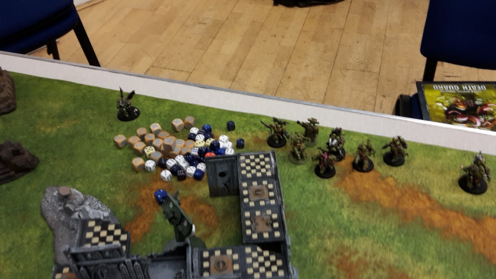 Time was running short at the club night, so we called the game there. At the end of my turn, I scored No Prisoners, Advance and Secure Objective 5, as well as Linebreaker.