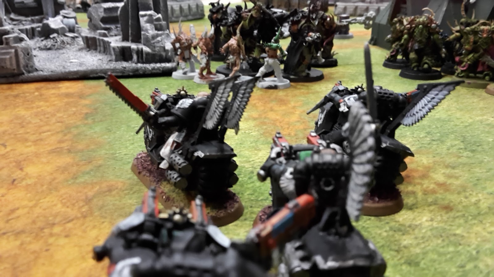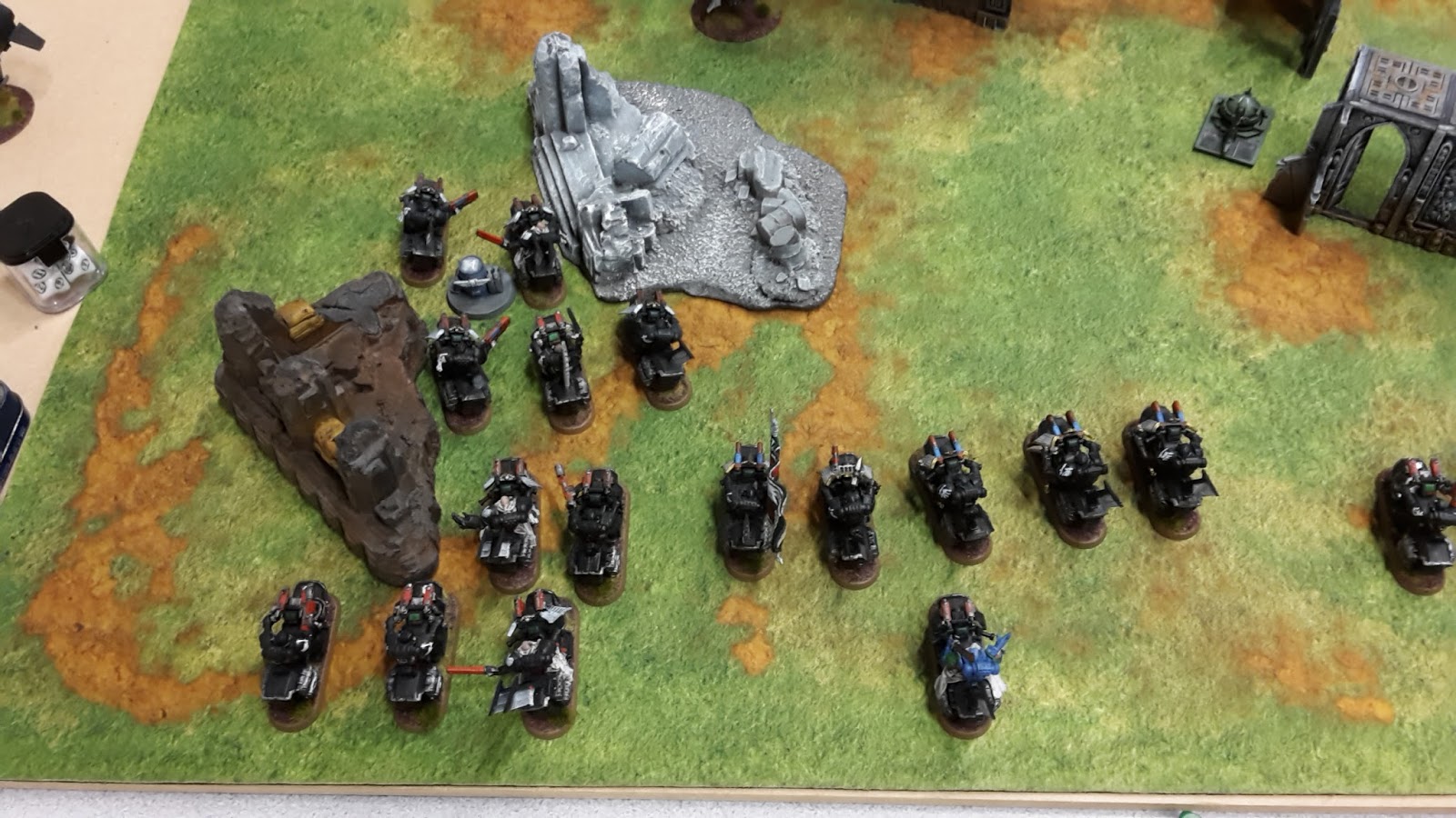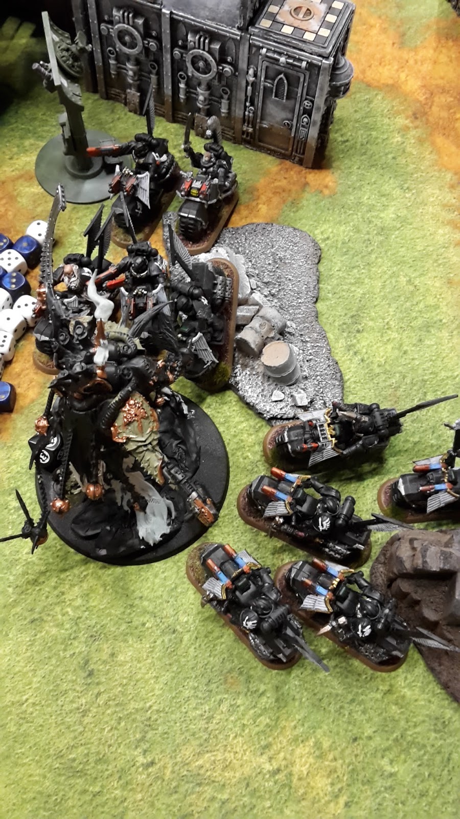 The Crawler moved towards the Ravenwing Bikers, while the rest of the Death Guard on the left flank moved up on the Bikers.