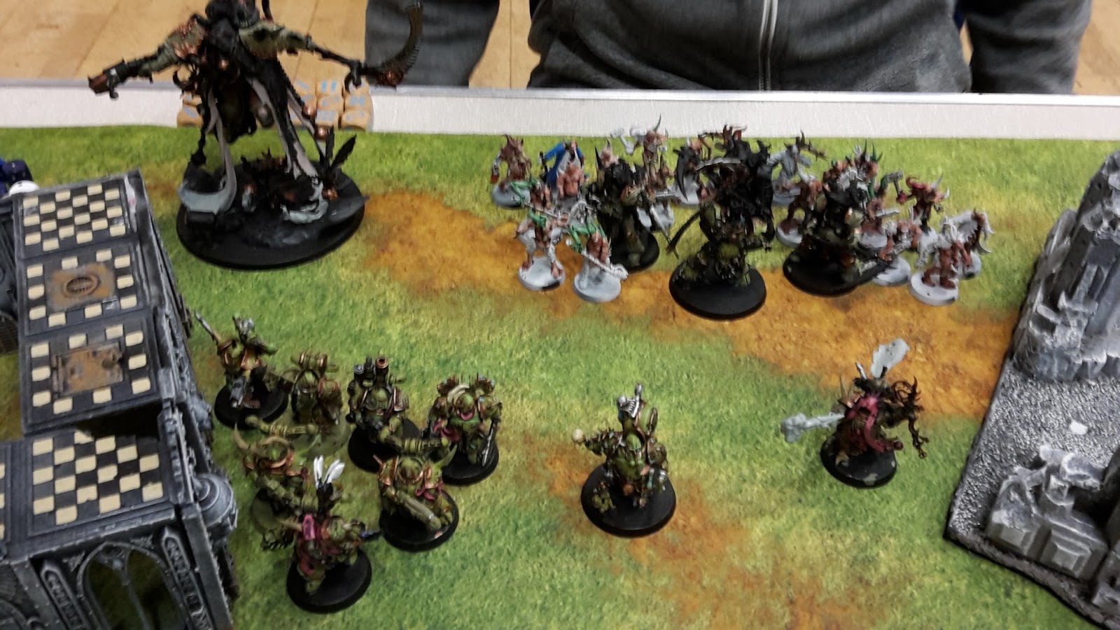 Another Daemon Primarch to face! I have not faced Mortarion before, but had read enough online to know to keep out of combat with him. I also knew that the Death Guard were good at putting out mortal wounds at close range, but were a slow force. I could use the speed of my army to my advantage, hopefully.